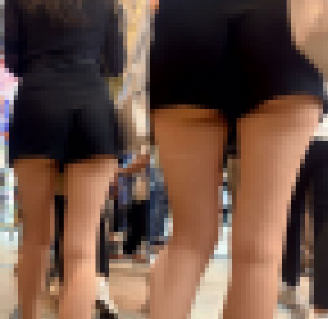 ピタっとしたショーパンからくっきり見えるパンティラインがセクシー。一緒にいたお連れの美女もミニスカート姿でこちらもセクシー。 ※白ショートパンツ美女をメインに撮影していますのでミニスカ美女はたまに写り込む程度になっていま…
