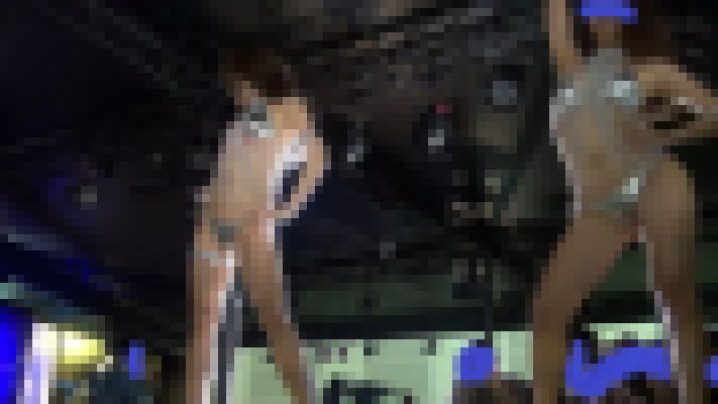 高台のステージでショーに登場するキャンギャル必然的にローアングルとなるので