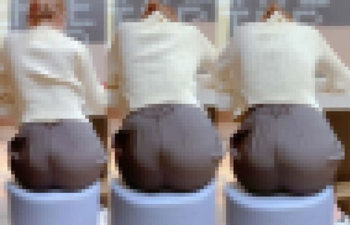 席について上着を脱いだら、お尻が丸出し状態♪