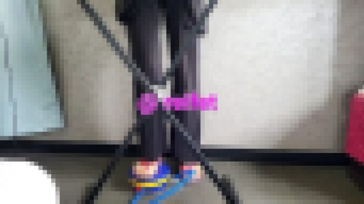 ビーチサンダルを履いて空気ポンプを踏みながらキーボードを弾いている動画です。