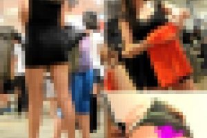■衣装:縞ニット 白ミニスカ パンスト黒 白 ピンク